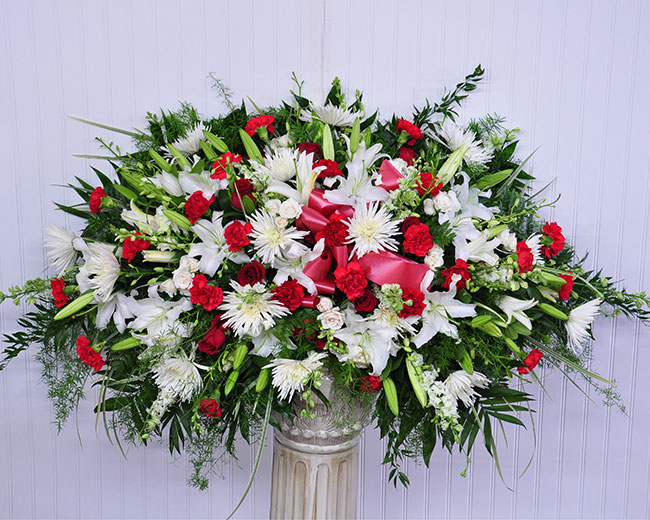 Reflect all the love you feel with this tribute to a beautiful life. A special person that has touched and enriched so many lives deserves to be remembered with this striking and elegant red and white casket spray.